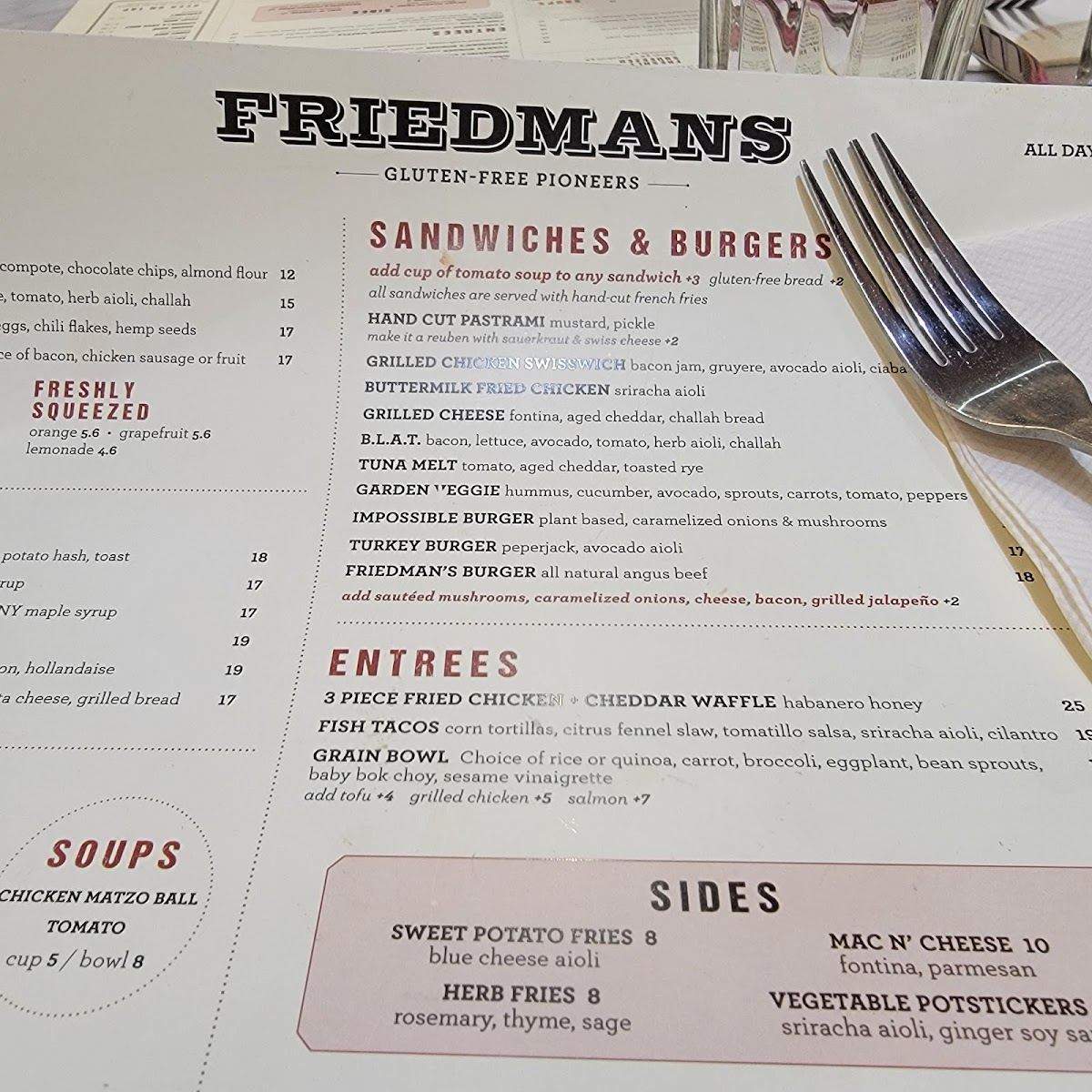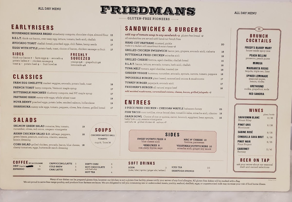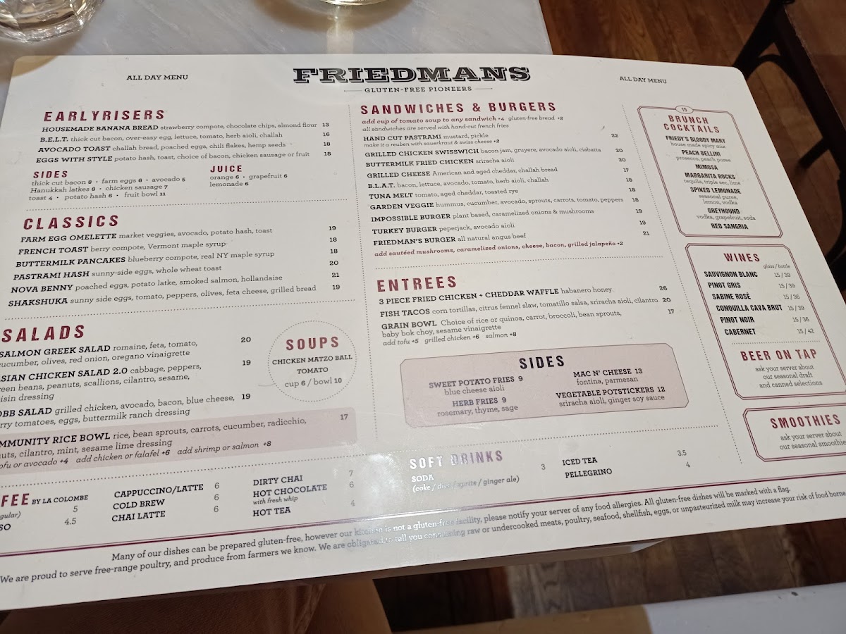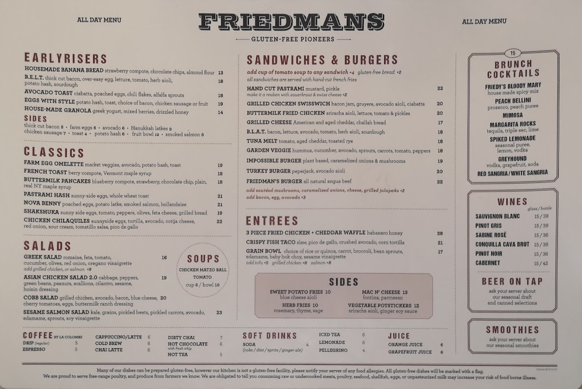 At Friedman’s, nestled in the heart of New York's vibrant 9th Ave, every dish offers a delightful twist on comfort food. From hearty favorites to lighter options, the Friedman’s Menu has something for every craving. Whether you're stopping by for a quick bite or settling in for a cozy meal, you'll be greeted with dishes crafted from fresh, high-quality ingredients. The menu is a blend of familiar flavors with a creative edge, making it the perfect place to enjoy a casual meal with a touch of culinary flair. Each dish is thoughtfully prepared, ensuring that whether you're a fan of traditional comfort or more adventurous flavors, there's something to satisfy your taste buds.